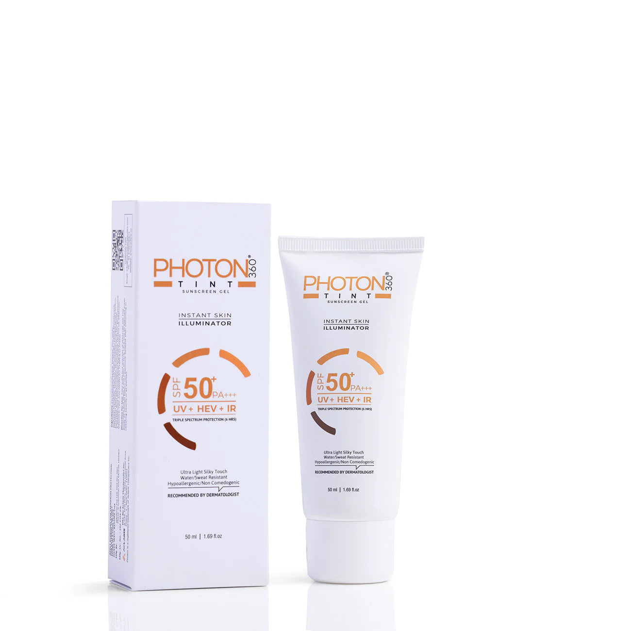 Aclaris Photon Tint 360 Sunscreen Gel SPF 50+ PA+++ provides long-lasting triple spectrum sun protection against harmful UVA/UVB rays, high energy visible rays, blue light, and infrared rays, for upto 6 hours. Aclaris Photon Tint 360 Sunscreen Gel is highly recommended by dermatlogists and features a non-oily, silky texture similar to a primer and offers tinted coverage like a foundation, making it ideal for daily use. This tinted sunscreen is also hypoallergenic.