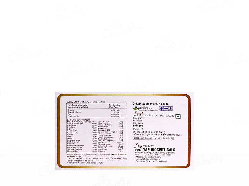Biotiyap Tablet is a high-concentration hair growth enhancer formulated with essential vitamins and active ingredients, including collagen peptides, natural extracts, amino acids, vitamins, and minerals. This comprehensive blend aims to support the health and vitality of hair, skin, and nails by providing the necessary nutrients to promote growth, strength, and overall appearance.