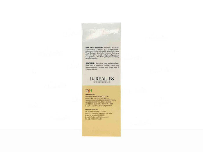 Djreal-FS Face Serum combines powerful antioxidants such as vitamin C, glutathione, vitamin E, and liquorice, alongside nourishing elements like allantoin, hyaluronic acid, and aloe vera to enhance skin well-being. The serum effectively delivers concentrated actives into the skin, promoting improved absorption due to its smaller molecule size. With a lightweight formula, the serum enables the skin to breathe, leaving it feeling soft and supple.