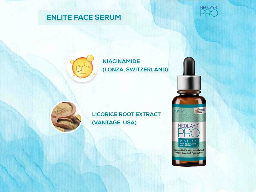 Neolayr Pro Enlite Skin Illuminating Face Serum is an advanced formula designed to manage hyperpigmented skin and enhance skin illumination. With Niacinamide USP PC and Licorice Extract, it hydrates, evens skin tone, and reduces blemishes and pigmentation. Suitable for all skin types, this gender-neutral serum targets age spots, dark spots, and uneven skin tone, promoting a lighter, brighter complexion.