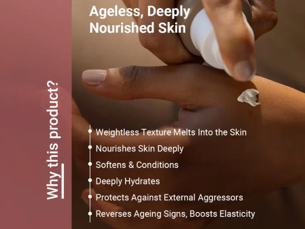 Neude Butter Mousse Non-greasy & Weightless Face Moisturiser is a lightweight yet intensely nourishing face cream that delivers hydration without the heaviness, making it ideal for daily use on all skin types. Enriched with whipped ghee, kokum butter, rose water, and vitamin E-rich almond oil, it softens and soothes skin, improves elasticity, tones the complexion, and acts as a protective barrier against environmental aggressors.