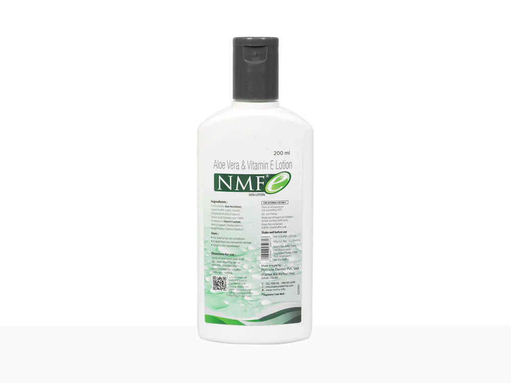 NMF E Lotion is a therapeutic moisturizer designed for dry, sensitive, and compromised skin. Infused with Aloe vera and Vitamin E acetate, it nourishes and strengthens the skin's natural barrier, enhancing hydration and promoting skin health. This non-sticky, easily spreadable formula absorbs quickly, providing long-lasting moisture and helping to maintain supple, resilient skin. Ideal for daily use to support skin integrity and comfort.