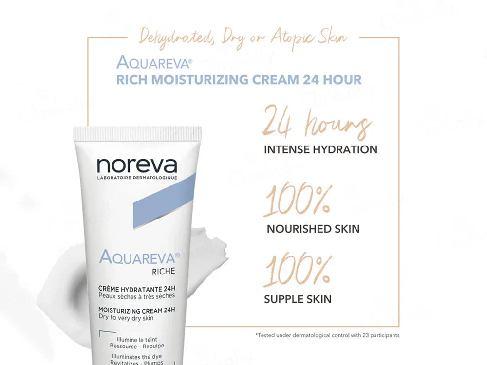 Noreva Aquareva Riche 24H Moisturizing Cream is a rich, hydrating cream designed to provide long-lasting moisture for dry to very dry skin. Formulated with a blend of nourishing ingredients like Mango Seed Butter, Hydrogenated Coconut Oil, and Sodium Hyaluronate, it replenishes the skin's moisture barrier, leaving it soft, supple, and comfortable for up to 24 hours. The cream's rich texture deeply hydrates while protecting the skin from environmental stressors, promoting a radiant and healthy complexion.