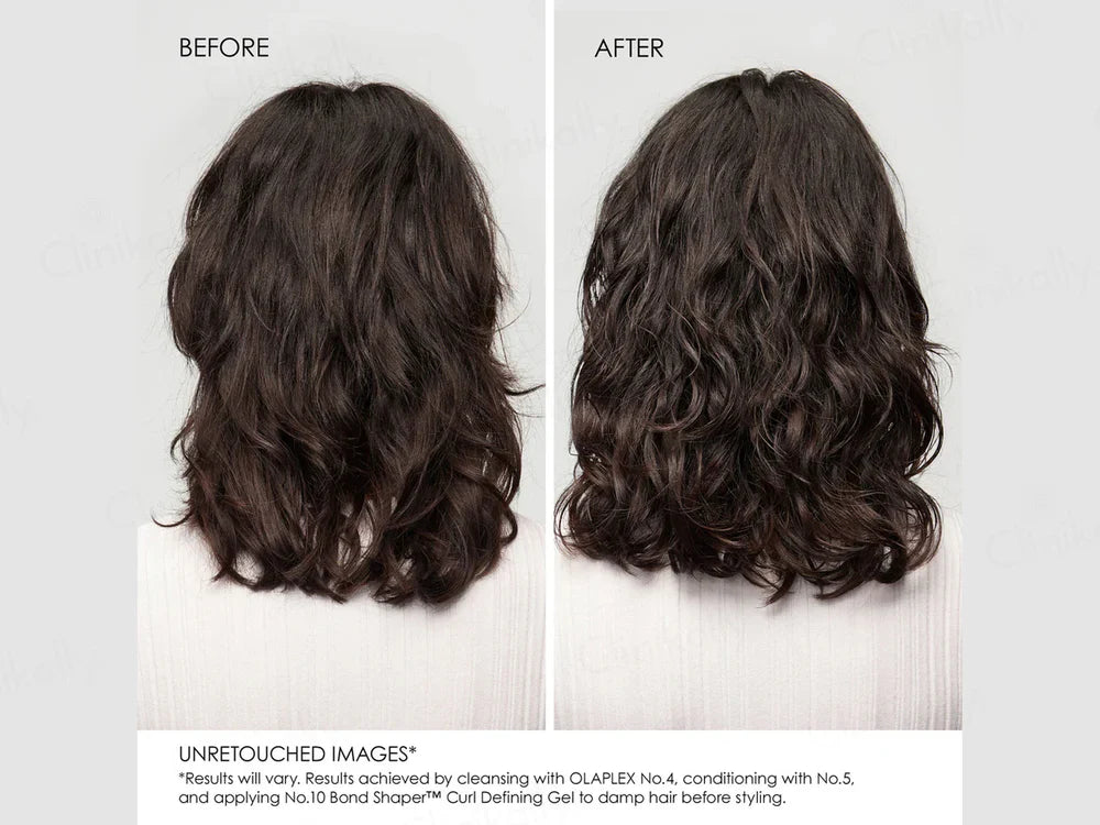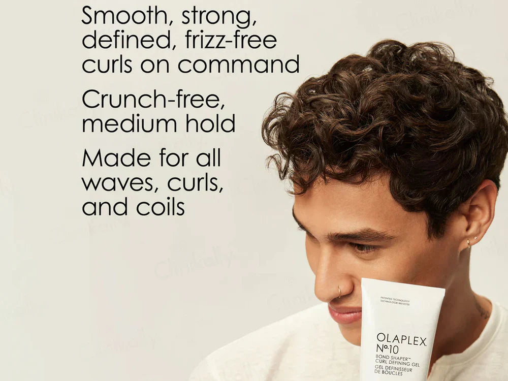 Olaplex No. 10 Bond Shaper Curl Defining Gel is a humidity-resistant, anti-frizz styling gel designed to enhance and define natural curl patterns in wavy and curly hair. Formulated with OLAPLEX Bond Building Technology™, it strengthens hair bonds while providing flexible hold for soft, smooth, and hydrated curls without the unwanted crunchy texture.