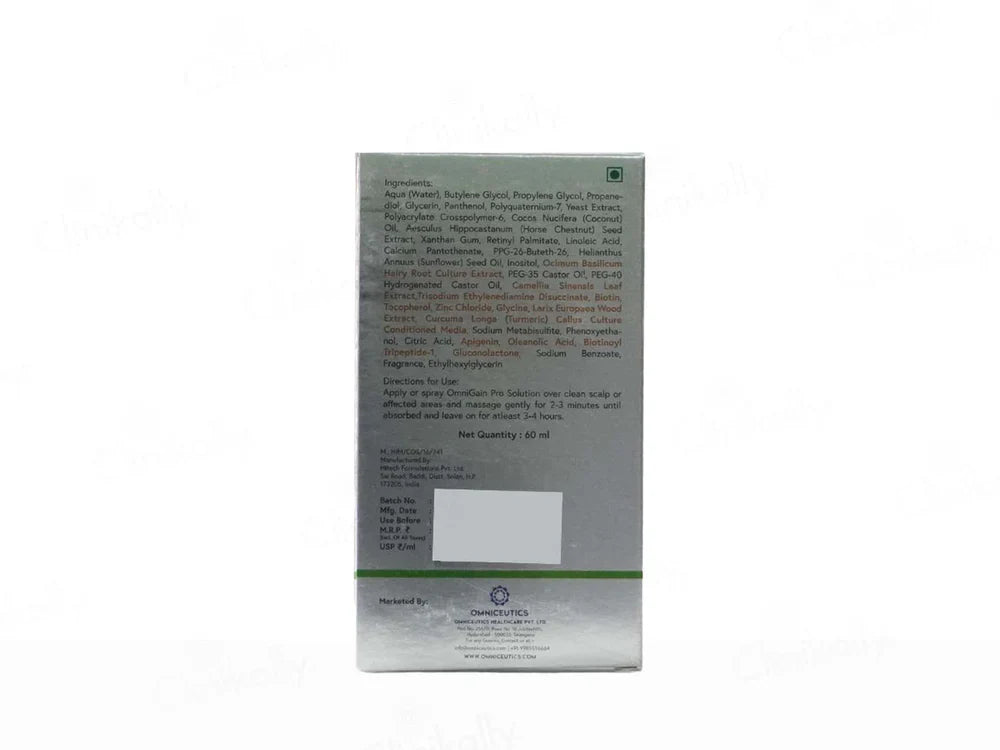 Omnigain Pro Advanced Anti Hairfall & Hair Growth Solution is a potent formula designed to reduce hair fall and promote new hair growth. Infused with scientifically proven ingredients like Redensyl, Anagain, and Procapil, this topical solution targets hair follicles to strengthen them and stimulate hair regrowth. It helps to prevent thinning, reduce breakage, and improve hair density. Suitable for all hair types, this non-greasy, quick-absorbing solution is ideal for daily use to achieve thicker, healthier hair.