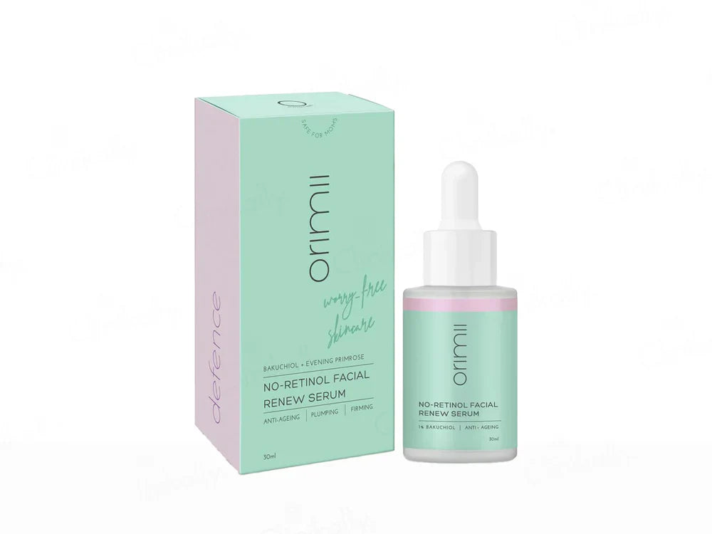 Orimii No-Retinol Facial Renew Serum is a lightweight, non-sticky facial serum designed to reverse signs of premature aging. Powered by AgeCap™™ Smooth Technology and natural actives like Bakuchiol and Peptides, it stimulates collagen, firms skin, and fades wrinkles while repairing the skin barrier with Ceramides. Ideal for daily use, it applies easily and layers well with other products.