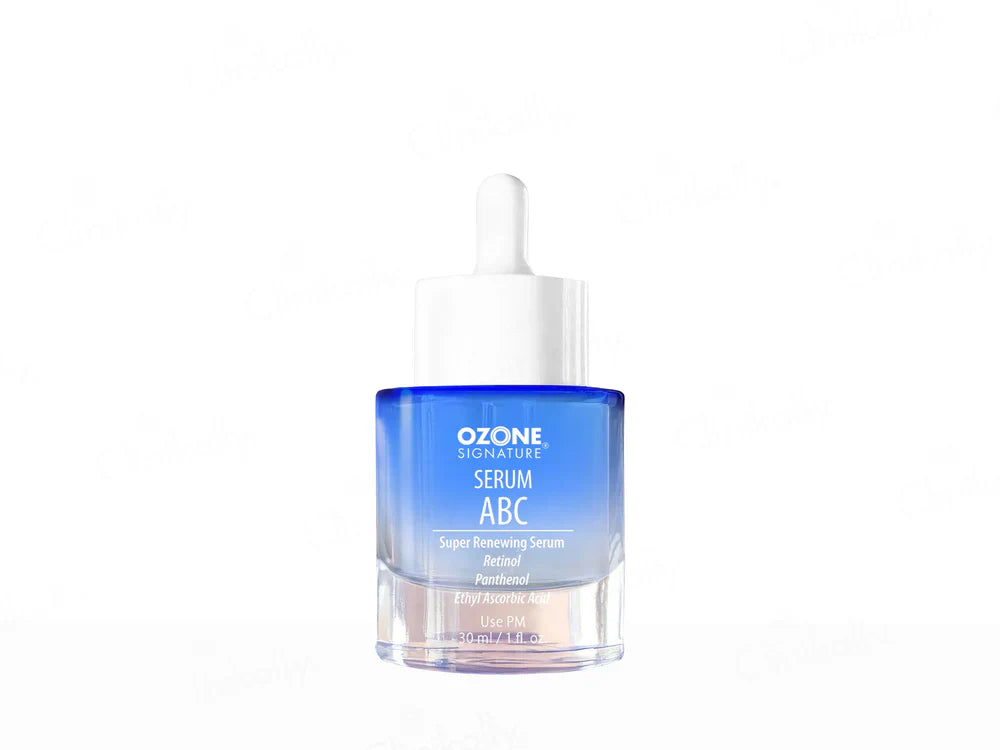 Ozone Signature Serum ABC Super Renewing Serum is a powerhouse blend designed to restore, renew, and rejuvenate the skin. Enriched with Retinyl Palmitate, Niacinamide, Aloe Vera Juice, and multiple botanical extracts, it visibly improves skin texture, boosts collagen production, and enhances elasticity. Its nourishing formula supports deep hydration, smooths fine lines, and revitalizes dull, tired skin. Perfect for daily renewal, this serum strengthens the skin barrier while delivering a more youthful, radiant complexion.