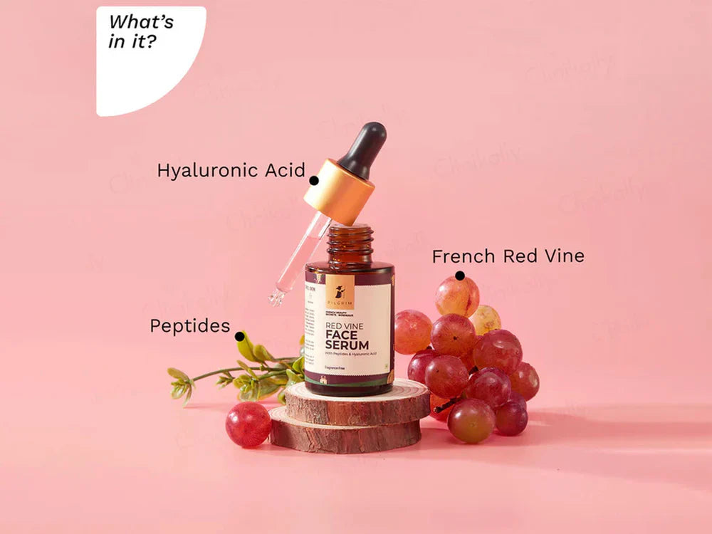 Pilgrim Red Vine Face Serum is a luxurious skincare treatment designed to rejuvenate and protect your skin, leaving it radiant and youthful. Infused with the antioxidant power of Red Vine extract, this serum helps to neutralize free radicals, reduce the appearance of fine lines and wrinkles, and improve skin elasticity. The lightweight formula absorbs quickly into the skin, delivering essential nutrients that boost collagen production and enhance your natural glow. Suitable for all skin types, Pilgrim Red Vine Face Serum is perfect for daily use to maintain a healthy, vibrant complexion.