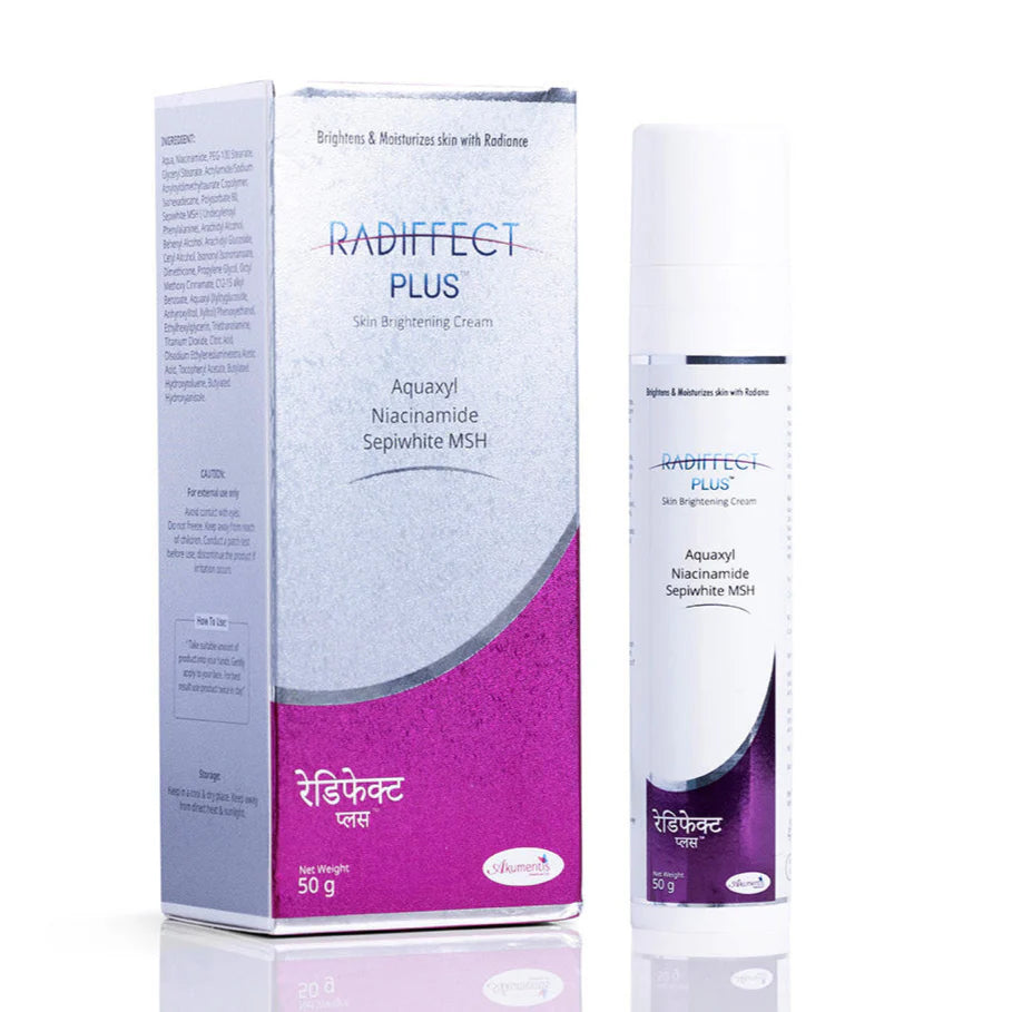 Radiffect Plus Skin Brightening Cream is a powerful skincare solution designed to brighten and moisturize the skin. Formulated with Aquaxyl, Niacinamide, and Sepiwhite MSH, it helps to reduce dark spots, uneven skin tone, and dullness. This cream nourishes the skin deeply, improving hydration levels while promoting a radiant, glowing complexion. Perfect for daily use, it enhances skin clarity and texture, making it a must-have for those looking to achieve luminous, even-toned skin.