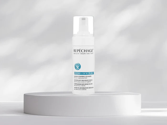 Repechage Hydra Dew Pure Gentle Foaming Cleanser is a sulfate-free cleansing formula that thoroughly removes impurities while protecting dry, compromised skin. Enriched with dual marine algae and sunflower seed oil, it maintains skin's natural moisture balance as it cleanses. The luxurious foam rinses clean without stripping or tightness, leaving skin refreshed and prepped for treatment. Ideal for sensitive or dehydrated skin needing gentle yet effective cleansing.