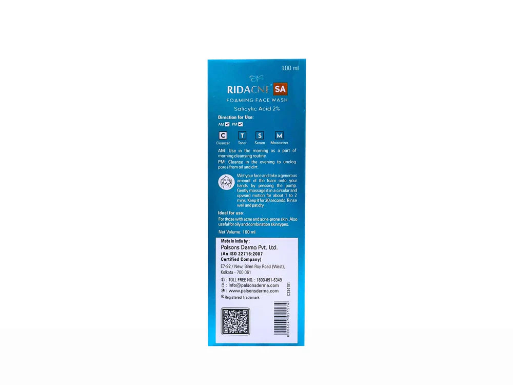 Ridacne SA Foaming Face Wash is a gentle yet powerful cleanser specifically designed for acne-prone skin. Enriched with Salicylic Acid and other skin-soothing ingredients, this foaming face wash helps to reduce breakouts, unclog pores, and remove excess oil and impurities. Its rich, foamy lather deeply cleanses without over-drying, leaving the skin feeling refreshed, clean, and balanced. Suitable for all skin types, especially oily and acne-prone skin, Ridacne SA Foaming Face Wash is ideal for daily use to maintain clear and healthy skin.