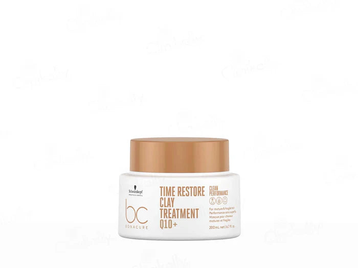 Schwarzkopf Professional BC Bonacure Q10+ Time Restore Clay Treatment is specially formulated for mature and fragile hair. Enriched with Q10 and Nutrifiller technology, it strengthens and rejuvenates hair structure, while the clay-based treatment purifies the scalp. It stimulates keratin production and offers targeted nourishment, reducing signs of aging in the hair. Regular use results in stronger, softer, and shinier hair, with improved scalp health.