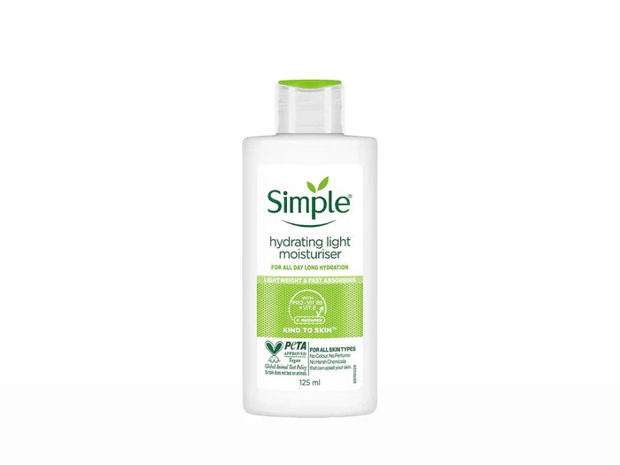 Simple Kind To Skin Hydrating Light Moisturiser is a gentle yet effective formula designed to provide long-lasting hydration for sensitive skin. Enriched with skin-loving ingredients. this lightweight moisturizer absorbs quickly without leaving a greasy residue, making it perfect for everyday use. Its unique blend of vitamins and natural extracts helps to nourish and soothe the skin, promoting a healthy, radiant complexion. Ideal for all skin types, Simple Kind To Skin Hydrating Light Moisturiser is the perfect addition to your skincare routine.