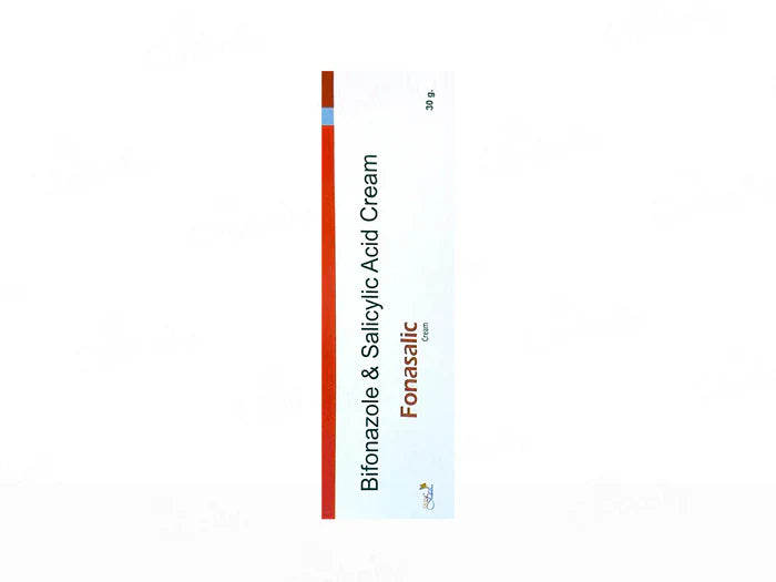 Skinfirst Fonasalic Cream is a topical antifungal and keratolytic formulation that combines the powerful actions of bifonazole and salicylic acid to treat fungal infections of the skin with associated scaling, thickening, or flaking. Bifonazole targets the fungal cell membrane, halting fungal growth, while salicylic acid helps exfoliate and soften the affected skin layers, enhancing drug penetration. Ideal for conditions like athlete's foot, ringworm, or jock itch, It effectively relieves itching, redness, and scaling, providing visible results with regular use.