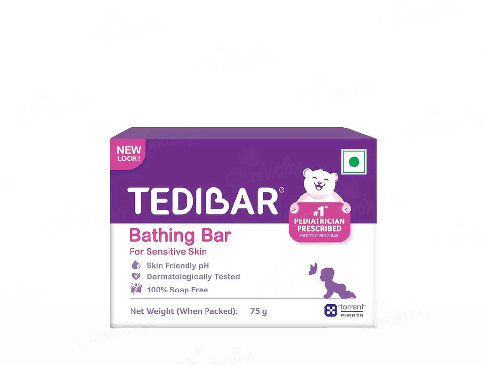 Tedibar Bathing Bar is a soap-free, pH-balanced bathing bar designed for babies' delicate skin. Ideal for use from 12 months onwards, it gently cleanses, moisturizes, and restores the skin's protective mantle. Free from harmful alkali, it helps maintain soft, supple skin while reducing rashes and dryness. Recommended by dermatologists, it ensures the skin stays healthy and hydrated.