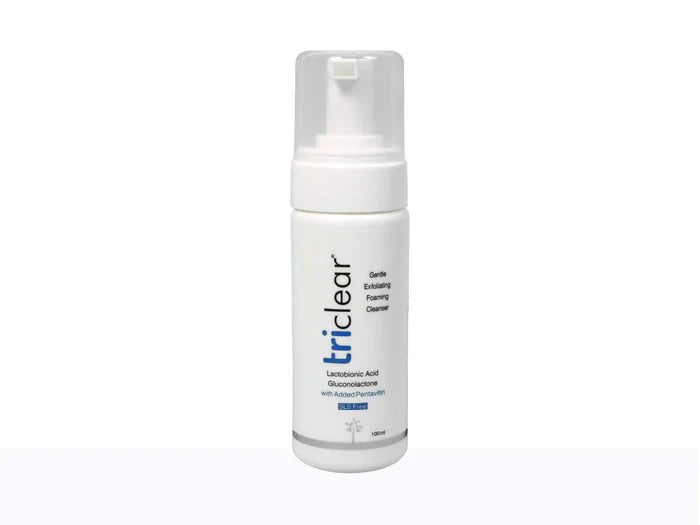 Triclear Gentle Exfoliating Foaming Cleanser cleanses the skin gently, removing impurities without drying it out. Its formula, enriched with Calendula Extract, Glycerine, Gluconolactone, Lactobionic acid, and Pentavitin, keeps the skin moisturized, youthful, and radiant. It also helps reduce fine lines, wrinkles, and surgical scars, promoting a soft and supple complexion.
