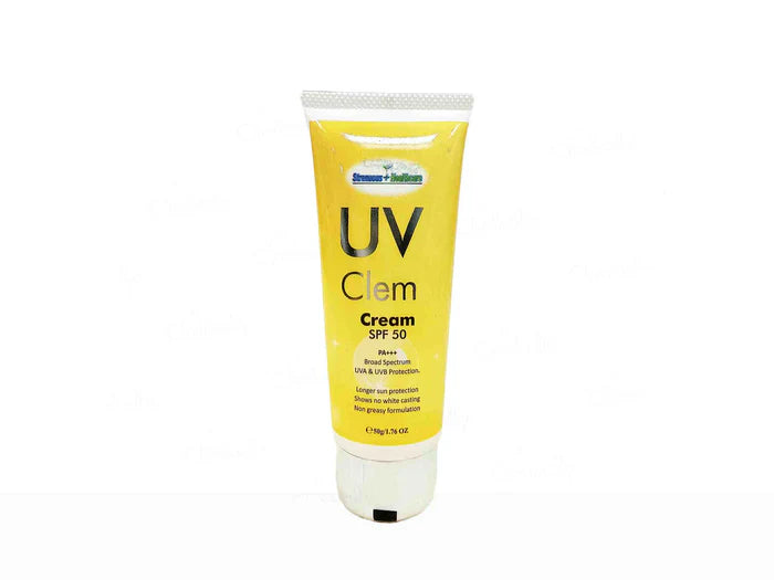 UV Clem Cream SPF 50 PA+++ offers superior sun protection with its advanced formula, shielding the skin from harmful UVA and UVB rays. This photo-protective cream provides broad-spectrum coverage while maintaining a lightweight, non-greasy feel. Enriched with antioxidants, it not only protects but also nourishes the skin, preventing signs of photo-aging and promoting a radiant complexion. Ideal for daily use on all skin types.