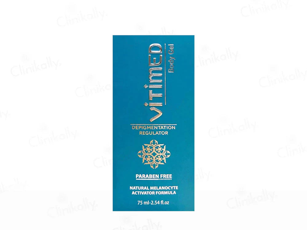 Vitimed Depigmentation Regulator Body Gel is a specialized topical formulation designed to manage skin depigmentation conditions, such as vitiligo. Enriched with potent antioxidants and active ingredients, this non-greasy gel aims to regulate melanin production, promote repigmentation, and restore a uniform skin tone. Regular application can help slow the progression of depigmentation and support the skin's natural pigmentation process.